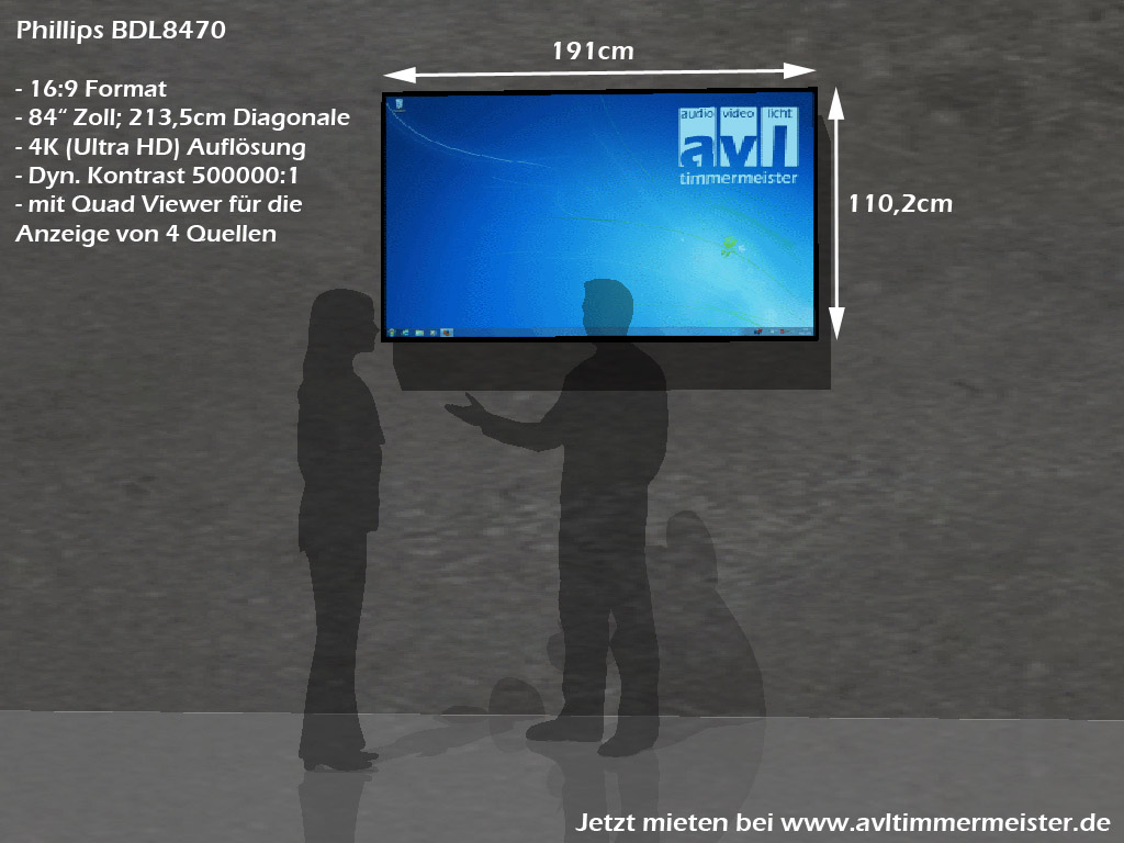 Mieten Sie jetzt die größten Monitore bei avltimmermeister: #84Zollmieten, #PhillipsBDL8470mieten, #4KDisplaymieten, #UHDDisplaymieten